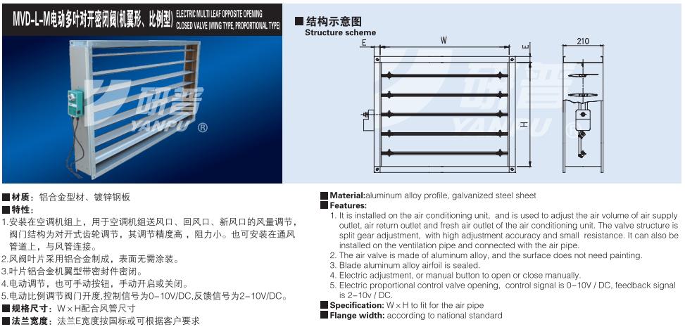 MVD-L-M电动多叶对开密闭阀(机翼形、比例型)