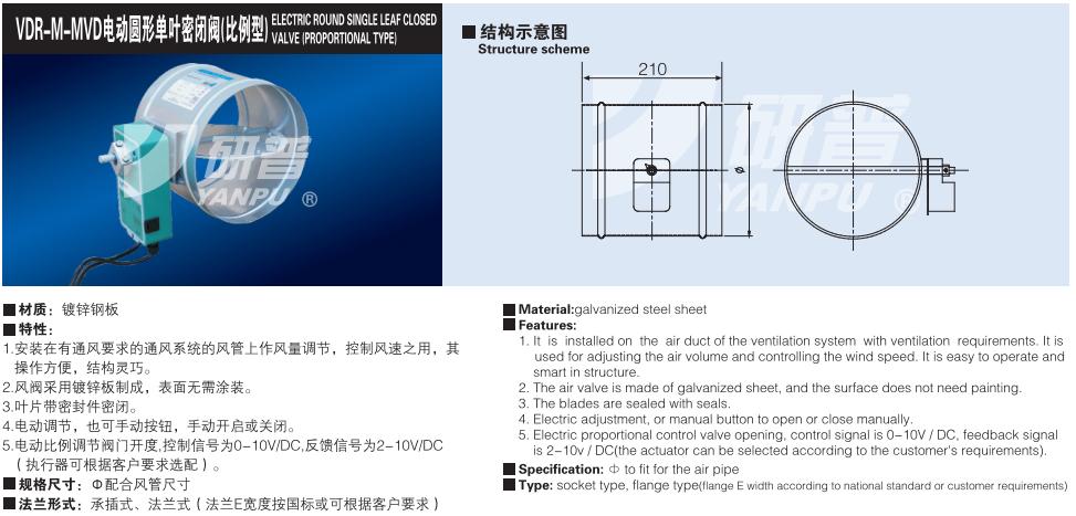VDR-M-MVD电动圆形单叶密闭阀(比例型)