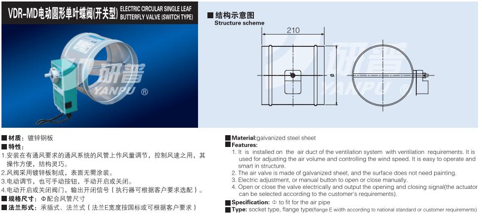 VDR-MD电动圆形单叶蝶阀(开关型)