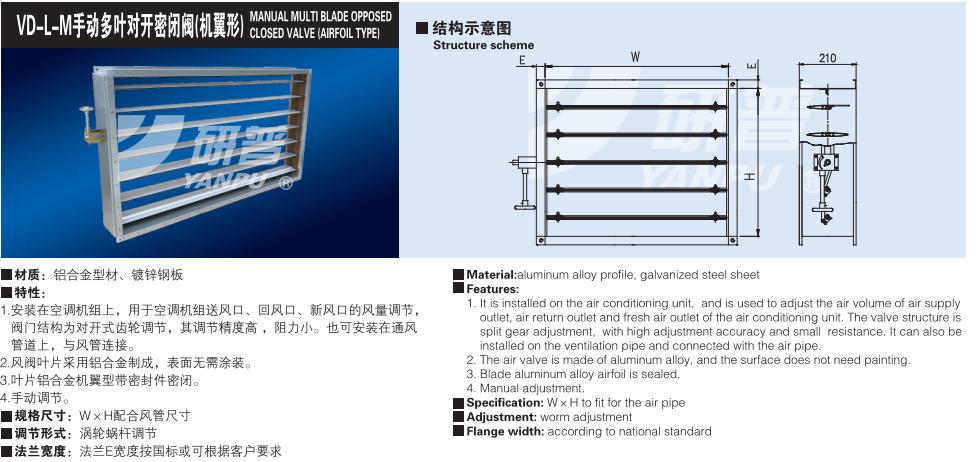 VD-L-M手动多叶对开密闭阀(机翼形)
