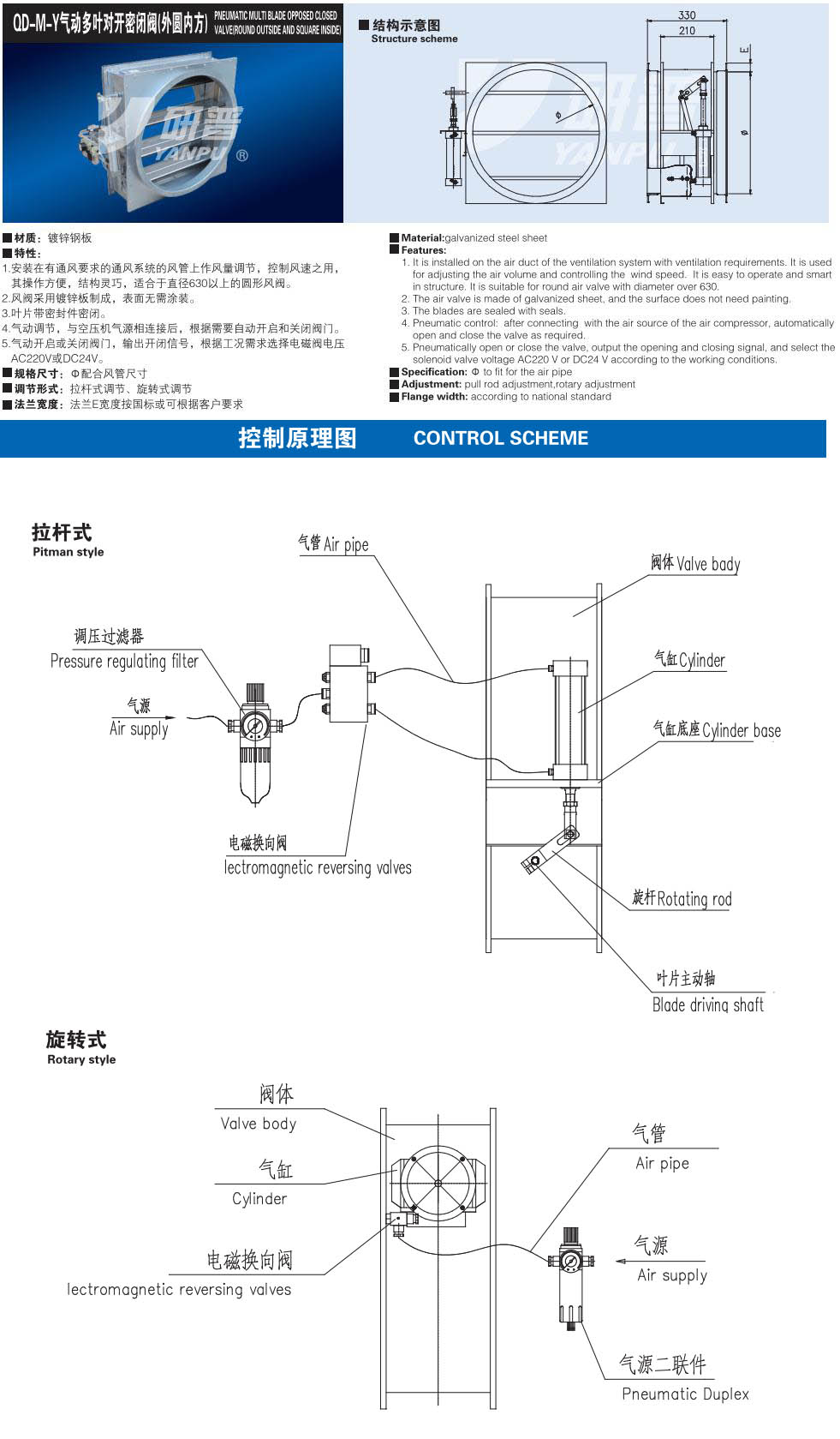 QD-M-Y气动多叶对开密闭阀(外圆内方)