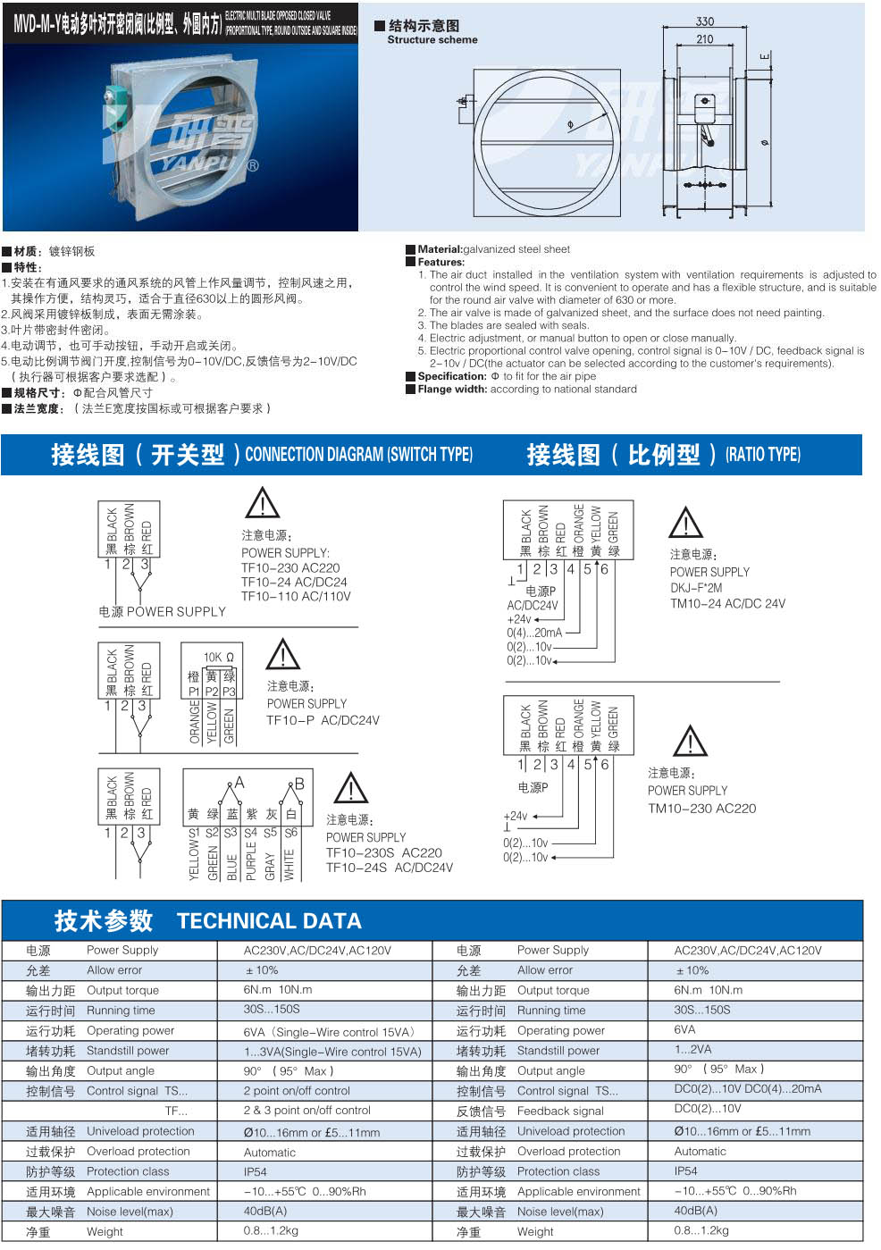 MVD-M-Y电动多叶对开密闭阀(比例型、外圆内方)