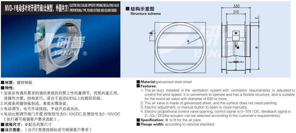 MVD-Y电动多叶对开调节阀(比例型、外圆内方)