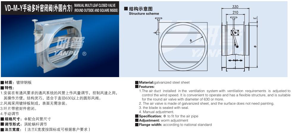 VD-M-Y手动多叶密闭阀(外圆内方)