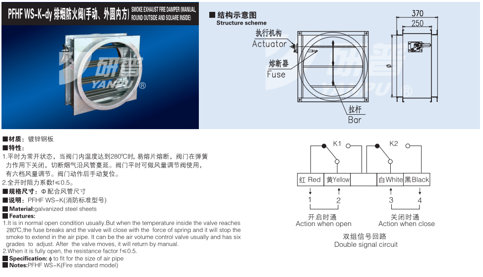 PFHF WS-K-dy排烟防火阀(手动、外圆内方)