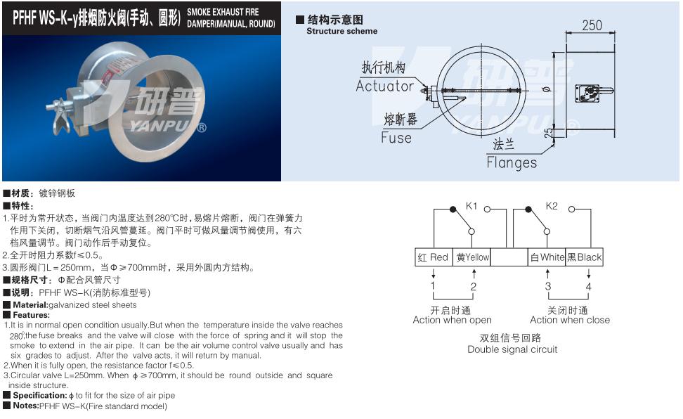 PFHF WSDc-K-y排烟防火阀(电动、圆形)