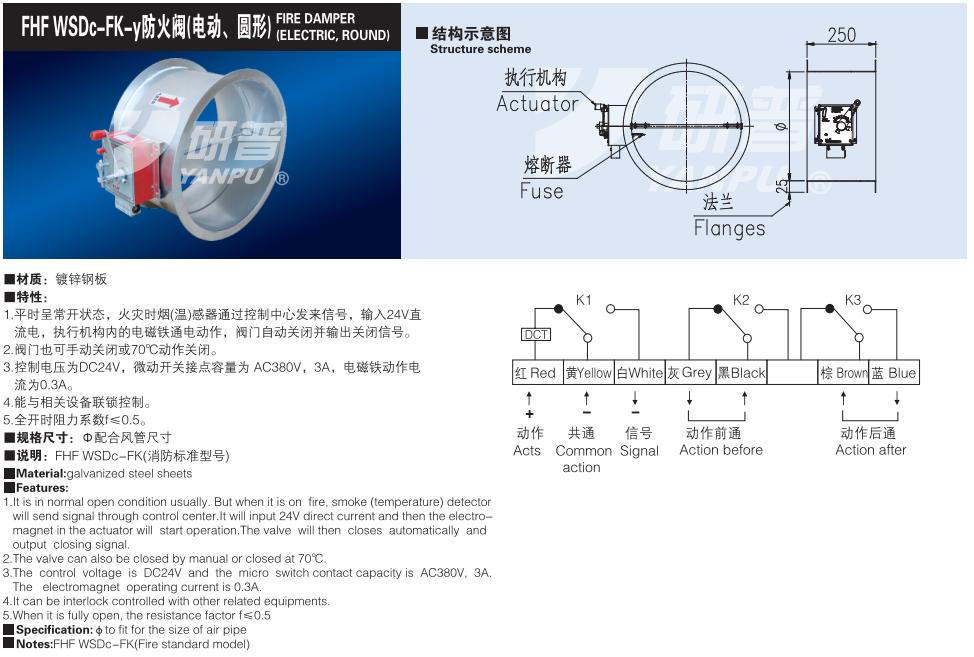 FHF WSDc-FK-y防火阀(电动、圆形)